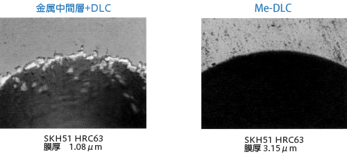 Me-DLCは母材の塑性変形に対して良く追従し、皮膜の脫落は認められません。